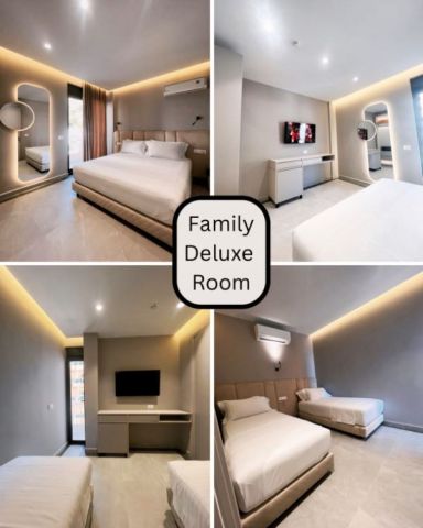 Фамилните стаи тип де лукс разполагат с две отделни едно от друго помещения. По-голямото помещение разполага с двойно легло, а по-малкото помещение разполага с две отделни стандартни легла. Деца се настаняват във фамилните стаи и ползват намаление ако са на възраст до 09.99 год. При настаняване във фамилни стаи НЕ е валидна отстъпка за трети възрастен!
